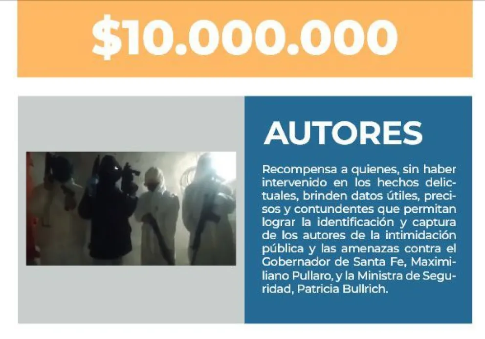 Ofrecen una recompensa de $10 millones para capturar a quienes amenazaron a Patricia Bullrich y Maximiliano Pullaro