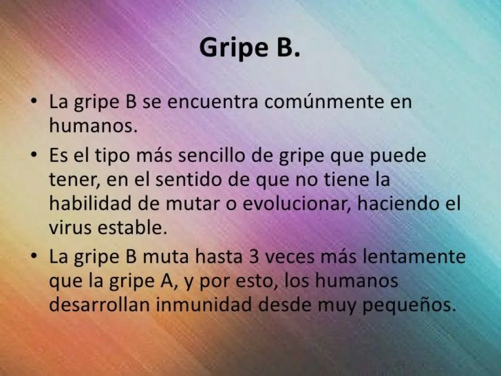 El impacto de los virus de la Influenza tipo B sobre el hombre se hace menor, en parte porque evolucionan con más lentitud que los Influenza A. Sin embargo, el virus muta con suficiente rapidez como para hacer imposible la instalación de una inmunidad duradera.