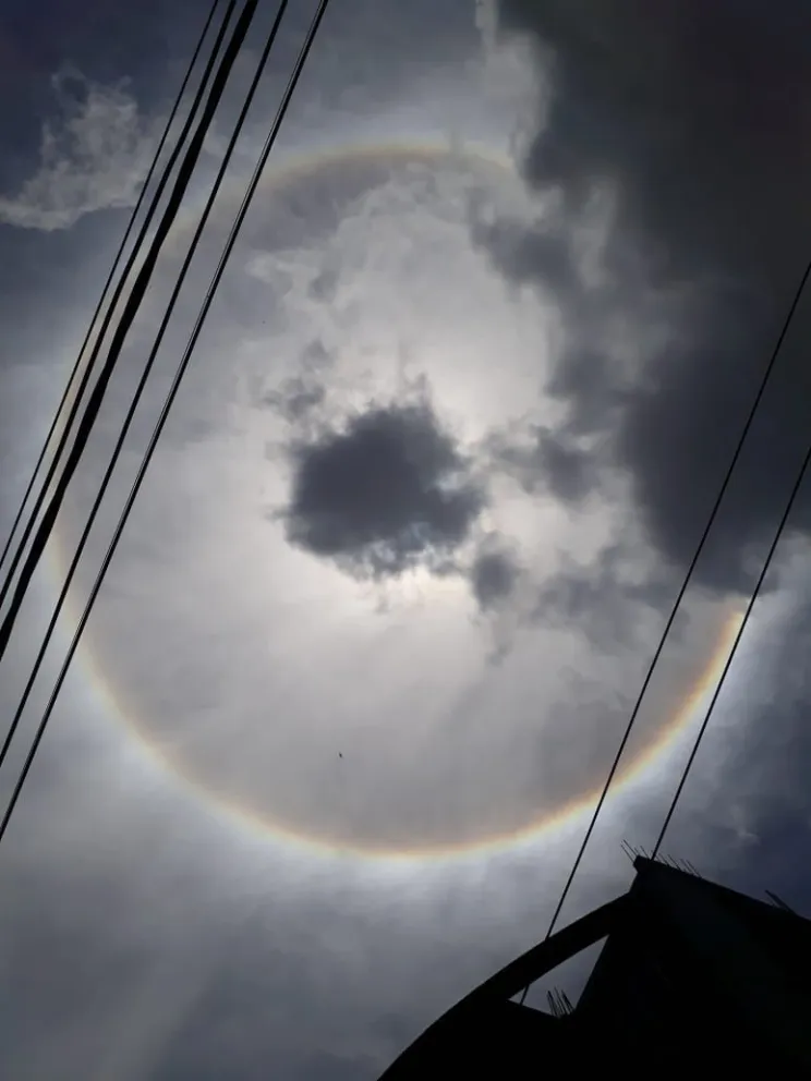 Tanto en Instagram, Facebook entre otras redes sociales se hizo viral la foto de un anillo de arcoíris alrededor del sol compuesto por diferentes colores.