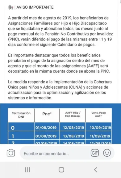 Esto significa que, a raíz de los cambios que se están realizando, las Asignaciones Familiares para trabajadores en blanco y personas que además cobran una Pensión No Contributiva, no pueden ver la última liquidación.