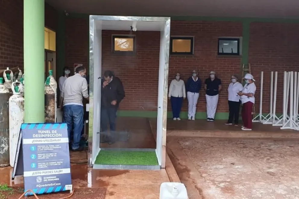 El equipo consta además de un tanque con capacidad para aproximadamente 400 litros de agua y el dispositivo elimina 28 litros de agua por hora. Cada persona debe ingresar apenas por unos segundos a la cabina. Tres de ellas fueron instaladas en el ala norte del hospital SAMIC Eldorado permitiendo que tanto profesionales, trabajadores de la salud y pacientes puedan tener seguridad al ingresar y regresar a sus casas.