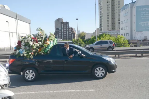 Una caravana acompaña el traslado del cuerpo de Diego Armando Maradona desde la Casa Rosada, donde fue el velatorio, hacia el Jardín de Bella Vista, donde será sepultado. Allí se encuentran los restos de sus padres. El recorrido que realizará el cortejo, acompañado por una cápsula de seguridad, comenzó en la avenida Paseo Colón, seguirá por la autopista 25 de Mayo, luego Perito Moreno, Acceso Oeste, Camino del Buen Ayre y, finalmente, transitará por la calle Roca hasta el cementerio.