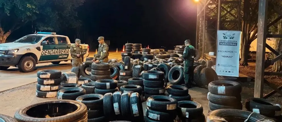 Los gendarmes, ante testigos, contabilizaron un total de 328 neumáticos de procedencia extranjera.