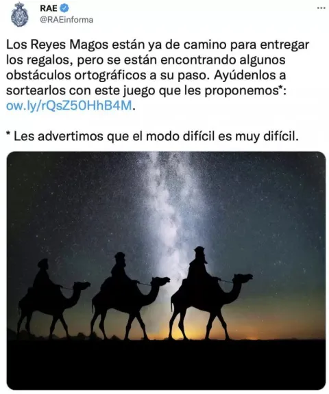 El último, si bien no es un meme, es una iniciativa de la RAE en Twitter, donde proponen a los usuarios un juego ortográfico, en el marco de la travesía de los reyes con los camellos.