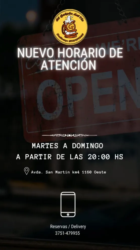 Ahora el Galpón del Tío abre nuevamente sus puertas de Martes a Domingo a partir de las 20 hs.