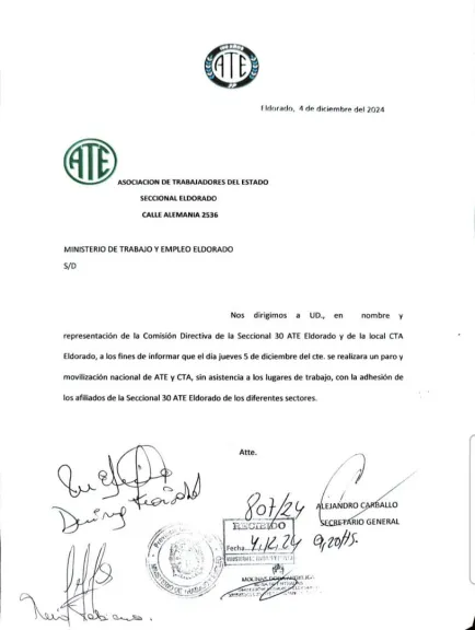 04/12/2024 Este jueves no habrá atención en el Hospital Samic por adhesión al paro nacional de ATE Te puede interesar La Policía atrapó a un joven motochorro Karting: La lluvia puso freno a las clasificaciones en Eldorado Secuestraron una motocicleta adulterada y detuvieron a dos jóvenes en el kilómetro 6 Capturaron a "Tierrita" acusado de varios robos y dejar herido a un sereno Seis detenidos por tentativa de robo, uno de ellos por un robo a un local comercial Pareja de jubilados fue víctima de un asalto en el kilómetro 6 Desde este lunes 6, vehículos de transporte podrán inscribirse por plataformas digitales Robaron y provozaron destrozos en una veterinaria de la zona Oeste Con el Kartódromo listo, Eldorado recibe la 2° Fecha del Misionero de Karting terrado Últimas noticias Dos muertos en un choque entre una camioneta y una moto La Policía atrapó a un joven motochorro Accidente fatal en Ruta 14 dejó un muerto y un herido Robos, disparos, heridos y un prófugo que ingresó a Misiones: Preocupan los crímenes en la frontera seca Karting: La lluvia puso freno a las clasificaciones en Eldorado Choque fatal en Puerto Esperanza: Murió una mujer y hay varios heridos sobre la Ruta 12 Revelaron todos los fármacos que encontraron en la casa del enfermero muerto en Palermo Secuestraron una motocicleta adulterada y detuvieron a dos jóvenes en el kilómetro 6