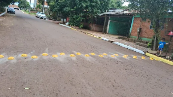 Colocación de reductores de velocidad, Instalación de cartelería vía y Pintura de cordones cuneta para delimitar espacios de tránsito y estacionamiento.