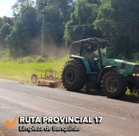 Macheteo en banquinas de la Ruta Provincial N°17 tramo Eldorado- Nueve de Julio. Trabajos en calles rurales para mayor transitabilidad de productores misioneros.