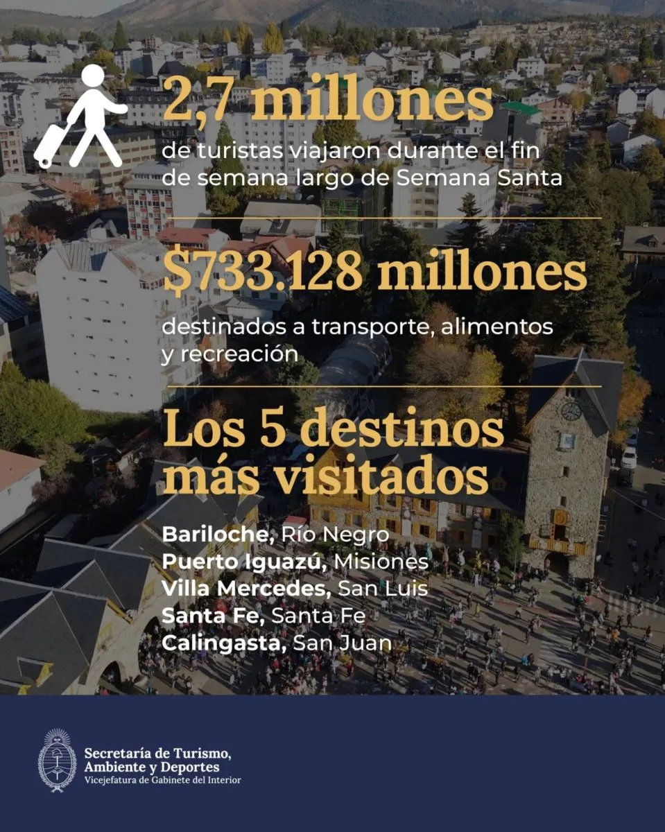 Semana Santa 2025: viajaron 2,7 millones de turistas por el país y gastaron $733 mil millones, un 16% menos que en 2024