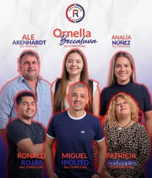 Encabeza la lista Ornella Beccaluva, actual directora de Acción Social. En segundo lugar Alejandro Arenhardt, vicepresidente de la Cooperativa de Electricidad de Eldorado (CEEL), seguido por la médica Analía Núñez. Los suplentes son Miguel ángel Ipólito empresario local; Patricia Chávez, rectora de una escuela secundaria; y Ronald Rojas, ingeniero agrónomo y trabajador del Mercado Concentrador Zonal.
