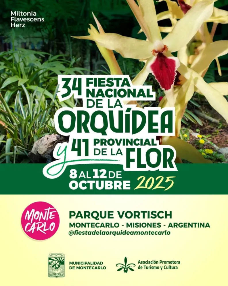 Del 8 al 12 de octubre Montecarlo, Misiones, te espera para vivir la 34ª Fiesta Nacional de la Orquídea y la 41ª Fiesta Provincial de la Flor en el imponente Parque Vortisch.