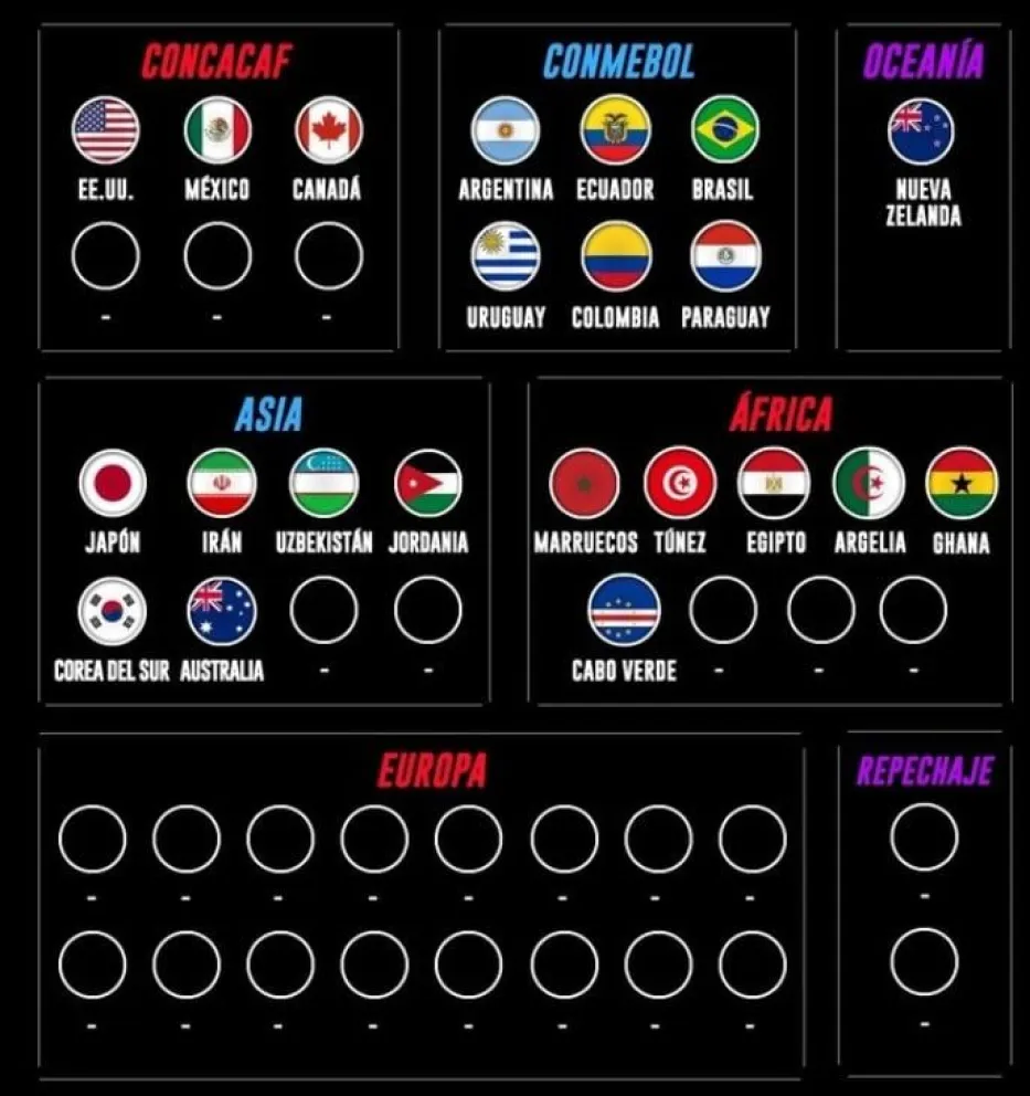 Hasta el momento, 22 de las 48 selecciones ya tienen asegurado su lugar en la competencia. Antes de fin de año se definirán 46 de los 48 clasificados, quedando solo dos cupos pendientes, que se resolverán en el repechaje intercontinental previsto para marzo de 2026.