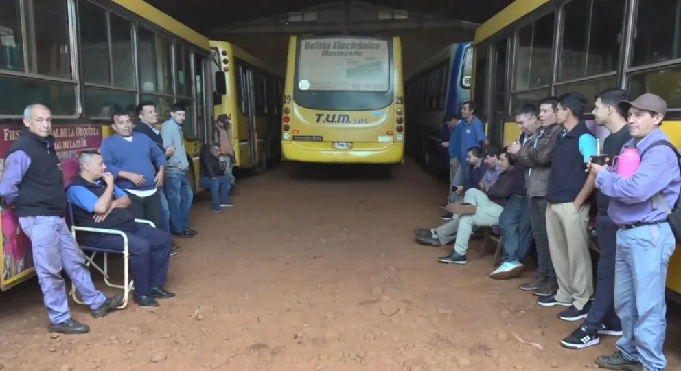 Sigue el paro de transporte en Montecarlo. Aguardan el pago de haberes