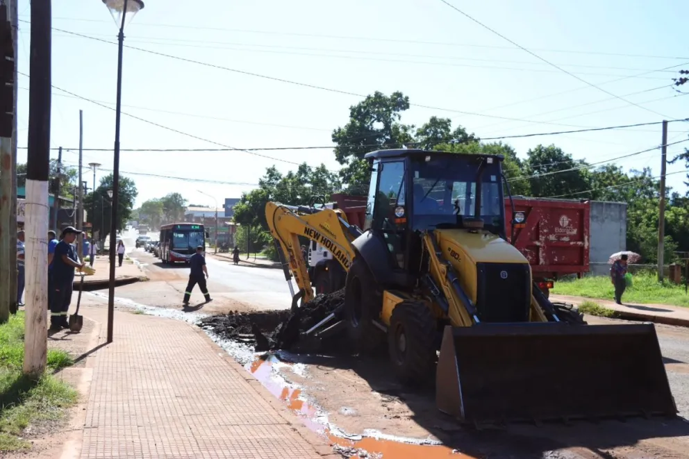 El equipo de la Secretaría de Obras y Servicios Públicos está realizando trabajos de bacheo sobre la Av. San Martín y calle Nolde, en el km 3.