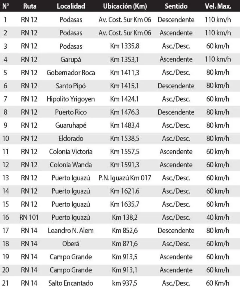 En Misiones hay 21 radares fijos habilitados en las rutas 12 y 14