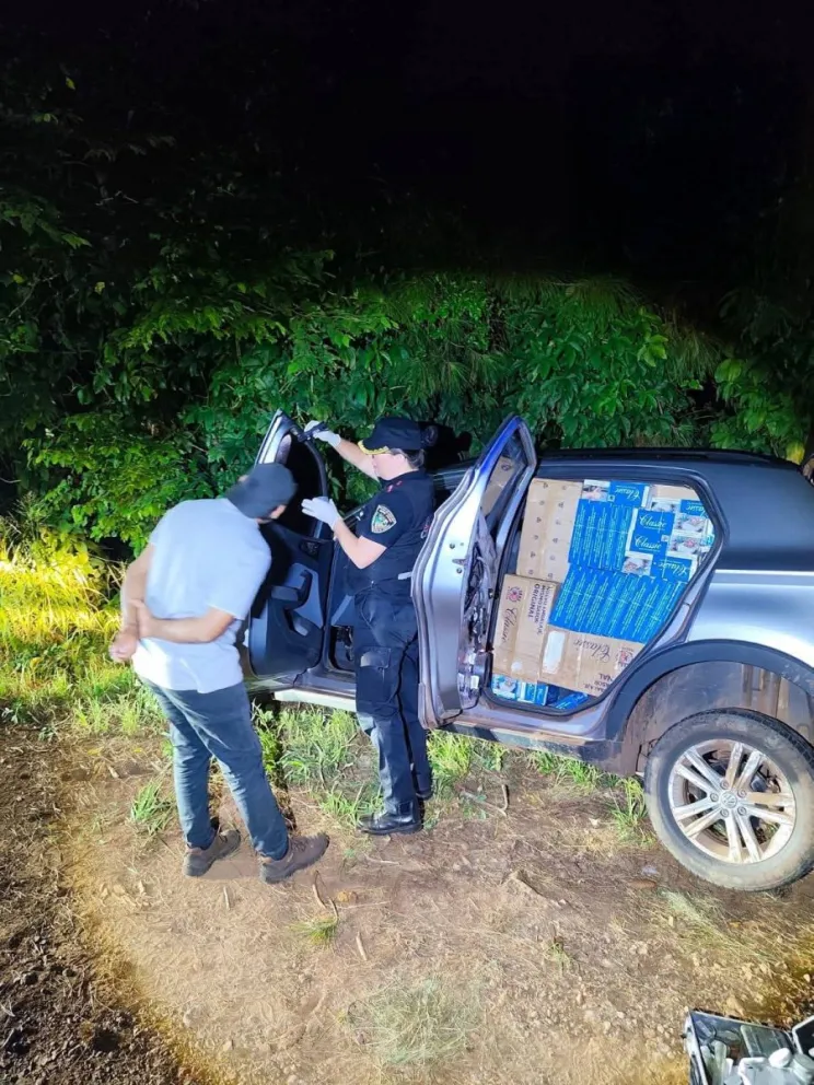 Al verificar el interior del automóvil, los efectivos detectaron varias cajas conteniendo cigarrillos de procedencia extranjera, sin documentación respaldatoria.