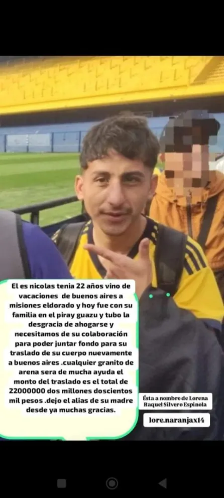 Joven oriundo de Buenos Aires murió ahogado en el Piray Guazú y piden colaboración para trasladar su cuerpo