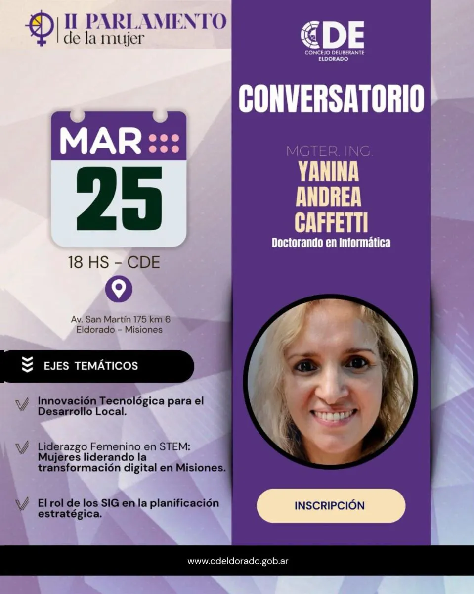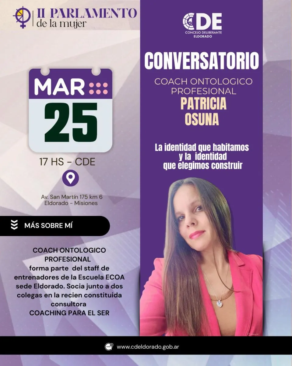 Desde el Concejo Deliberante Eldorado, siguiendo con las actividades del II PARLAMENTO DE LA MUJER 2026, invitan a ser parte de una charla pensada para inspirar, aprender y potenciar tu camino: