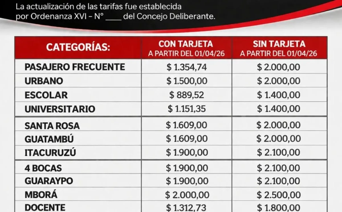 Desde este miércoles entró en vigencia el nuevo cuadro tarifario del transporte urbano de pasajeros en Montecarlo, de acuerdo a lo establecido por ordenanza municipal aprobada por el Concejo Deliberante.