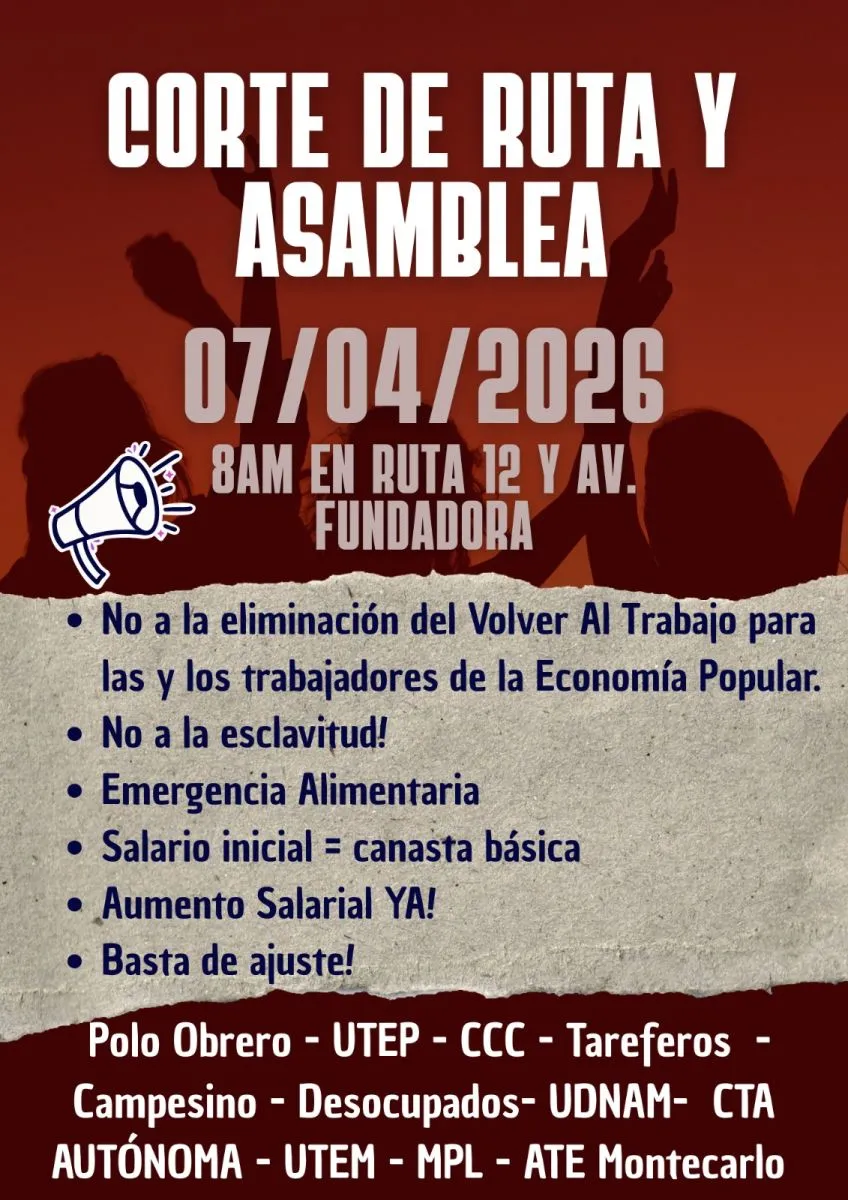 Este martes 7 se llevará adelante una jornada de protesta impulsada por diferentes gremios. La medida provocará interrupciones en el tránsito. En Eldorado se esperan cortes desde las 8 horas y hasta el mediodía en Ruta 12 y Avenida Fundador. En el lugar se realizarán asambleas permanentes.