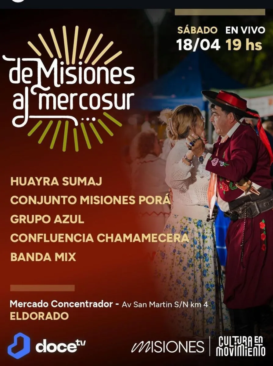 El sábado por la noche se emitirá el programa De Misiones al Mercosur por Canal Doce con un espectáculo musical.