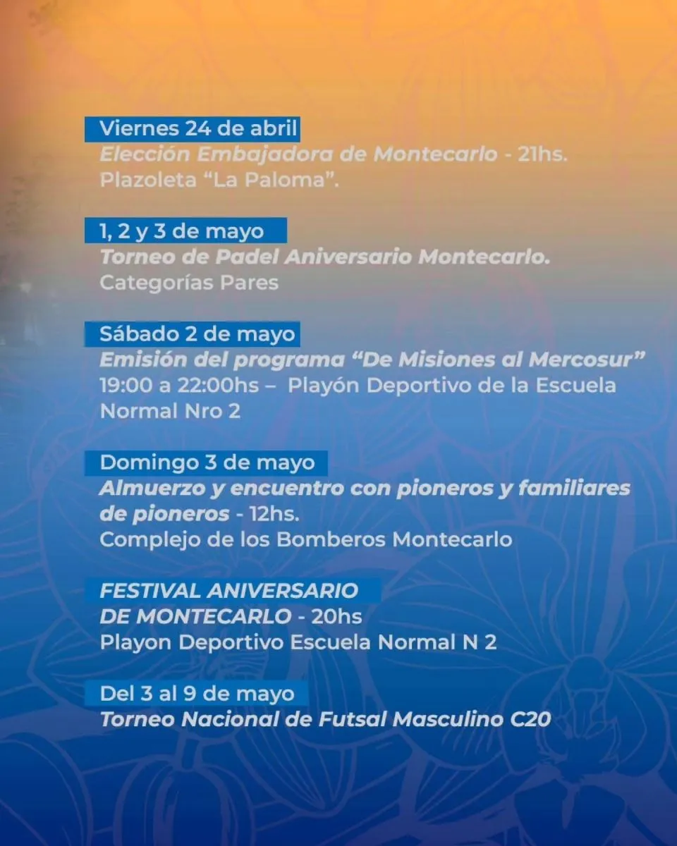 106 años de historia nos encuentran unidos, celebrando a Montecarlo con un mes de actividades para disfrutar en familia.