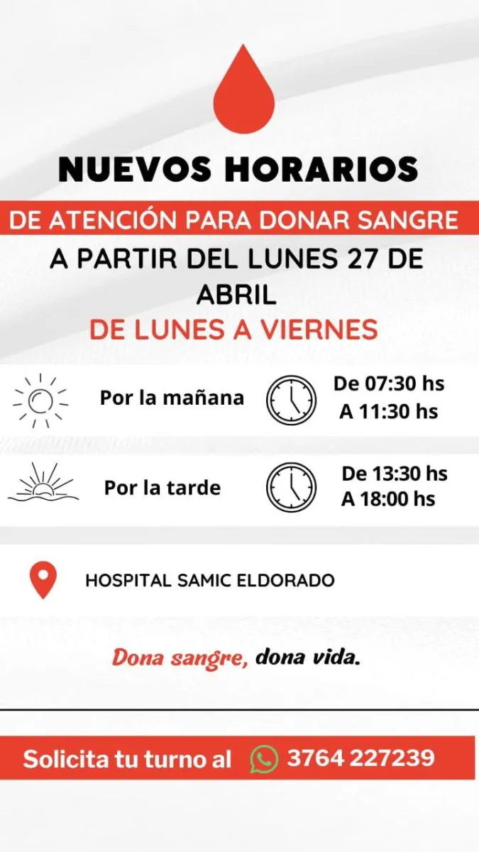 Nuevos horarios para donar sangre en el Hospital SAMIC